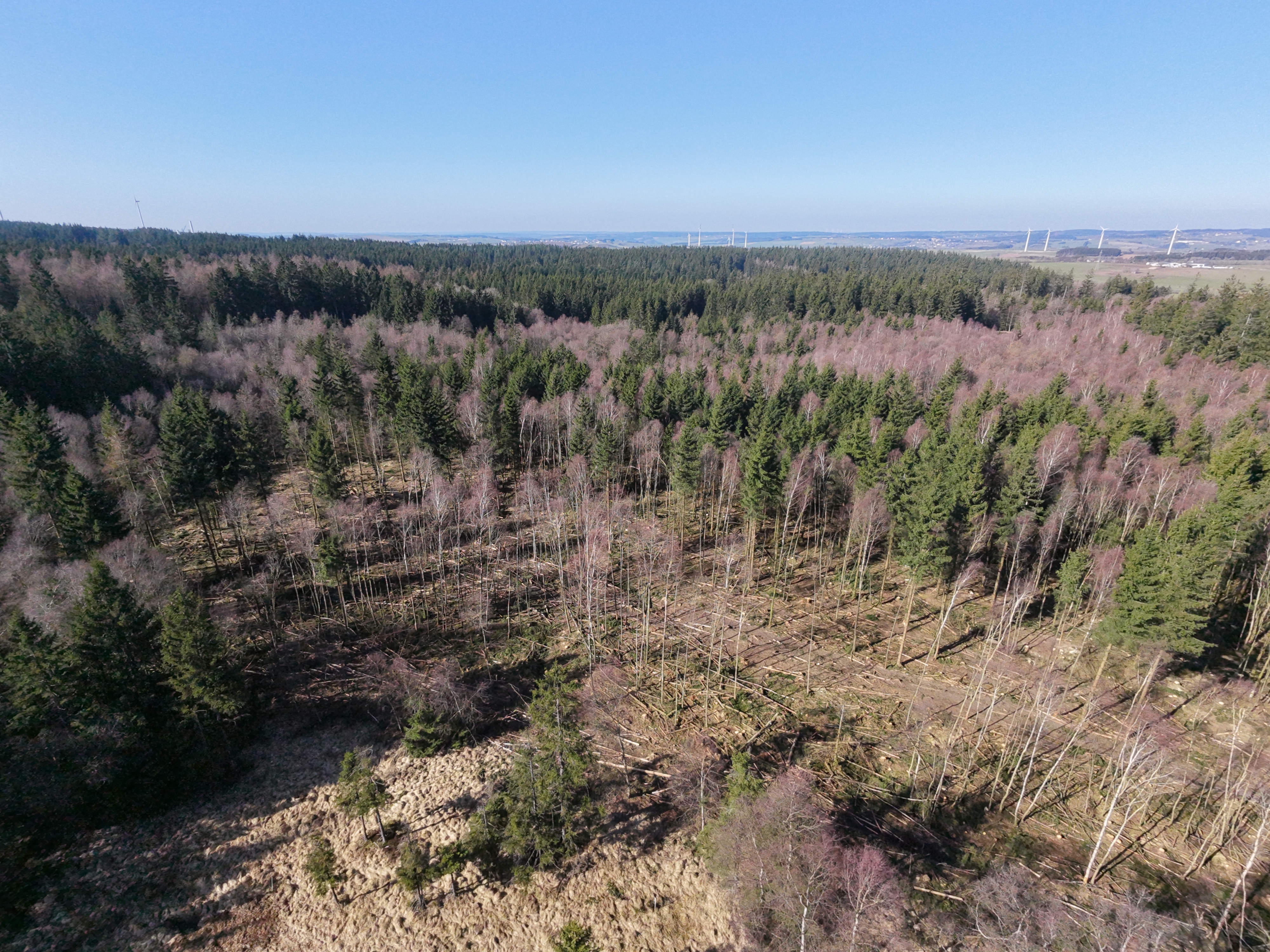 In the Schneifel case study area, which is one of the seven case study sites in the SpongeBoost project, restoration activities have recently moved into implementation. The measures are being coordinated by Stiftung Natur und Umwelt Rheinland-Pfalz (SNU) together with Forstamt Prüm under the state peatland conservation programme. The aim is to restore a more natural water regime in two sub-areas, at Klöckersfenn and above Rohrvenn, by closing existing drainage ditches and reducing the hydrological impacts of past drainage and forestry use. At the same time, large parts of the spruce stands are being removed using cable-crane technology in order to minimise soil disturbance and support the long-term development of site-typical wet forest habitats such as alder and birch. Positive effects are also expected for the adjacent fens and wet heath areas within the catchment.